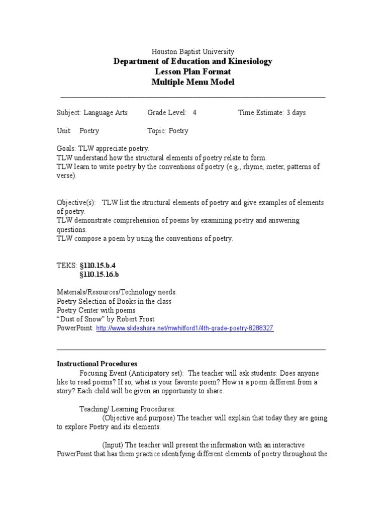 4Th Grade Poetry Lesson Plans - Free Printable Lesson Plans For 4th Grade Education Com :. Poetry, prose, and drama, oh my! From there, dedicated teachers like you can curate unique lesson plans to engage their students and reduce their planning time. 9 > poetry unit objectives a. This lesson is about punctuation and capitalization in poetry. Build positive relationships with parents.
